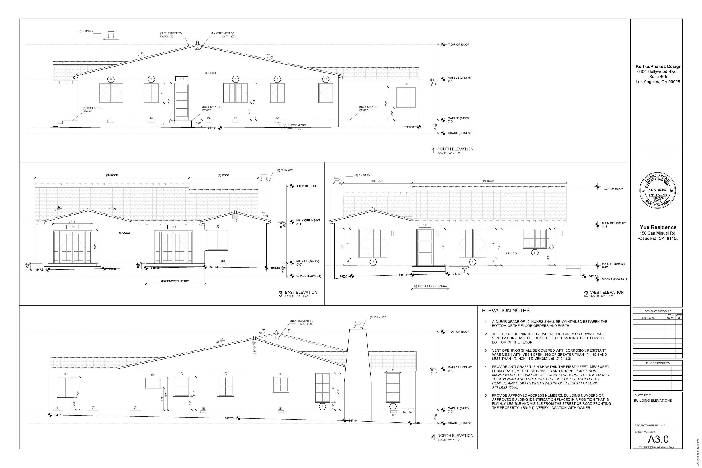 Professional work construction documents I have worked on and executed, Design work is attributed to Koffka Phakos Design